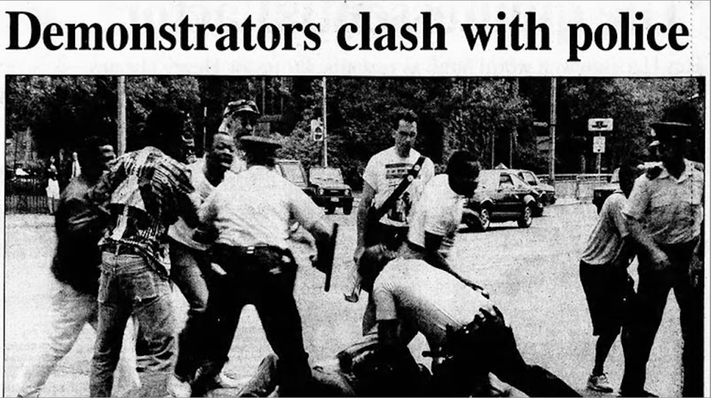 The tension reached its breaking point on June 2, 1990, during a confrontation between the police and the demonstrators outside the museum. The conflict resulted in injuries to three police officers and the arrest of eight protesters, including the CFTA leader Adisa Oji. The museum then took the unprecedented step of obtaining a legal injunction that barred protesters from coming within 50 feet of any entrance.